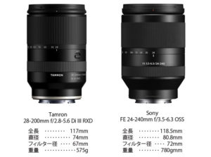 発売が開始されたTamron28-200mmと同じ超高倍率ズームレンズといえばSony FE 24-240mmがあります。比較すると…